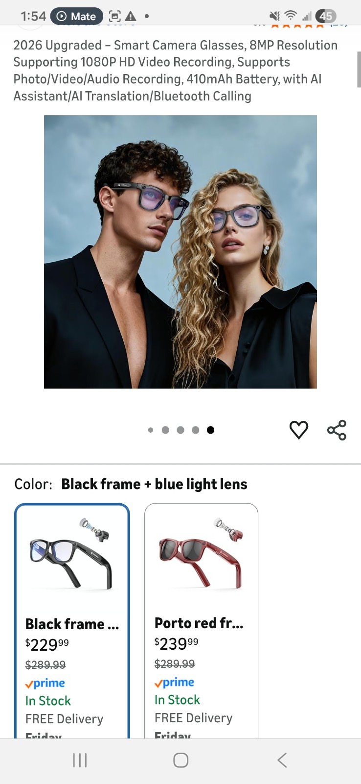 【DOUBLE BATTERY LIFE】It lasts twice as long as ordinary smart glasses,10-day ultra-long standby time: Equipped with a 410mAh high-capacity battery and a low-power Bluetooth 5.4 chip, it only takes 90 minutes of fast charging. During the charging process, you can still use the video recording/photo/video recording functions normally. It can play music or make calls for more than 15 hours continuously, so say goodbye to battery anxiety. This is a very practical recording glasses suitable for both men and women!